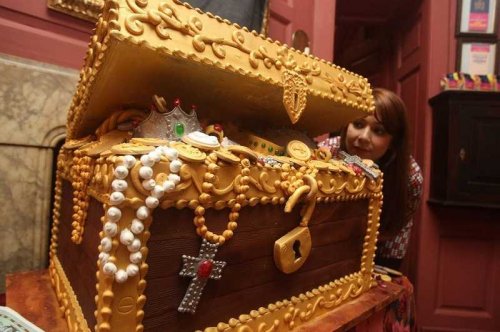 Посвященная Британии комната с тортом в виде льва, покрытого золотистой