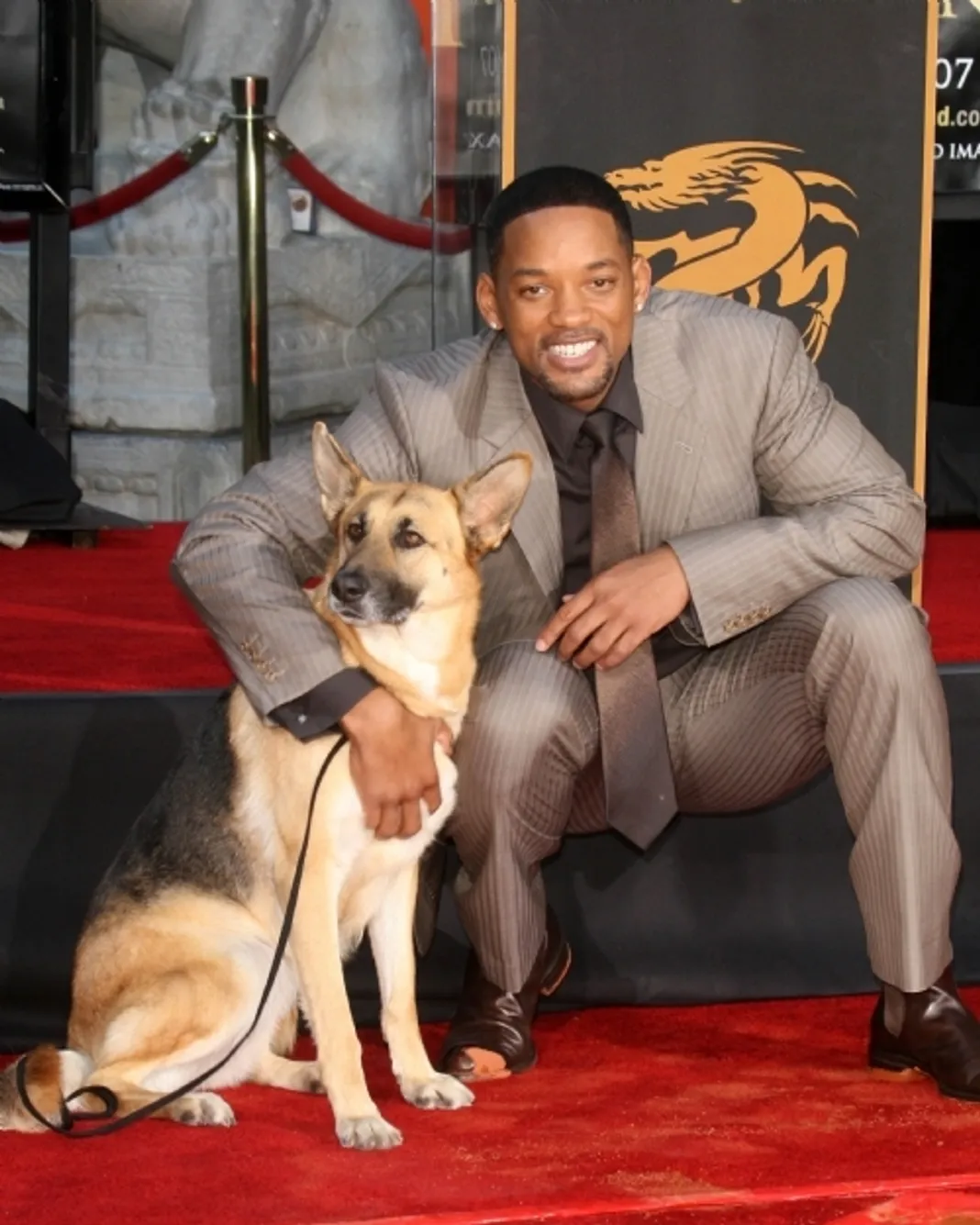 Немецкая овчарка по имени Эбби пришла на премьеру фильма "Я - легенда"(2007 год), в котором она снялась вместе с актёром Уиллом Смитом.